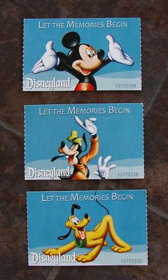 Title (ebay affiliate link): Disneyland "Let The Memories Begin" 2011 Ticket Stubs - Mickey, Goofey, Pluto