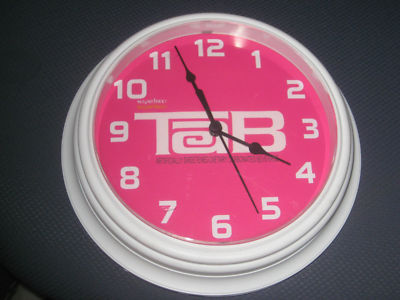 TAB COLA 6" WALL CLOCK - WHITE PLASTIC WITH PINK FACE - 1ST DIET SODA