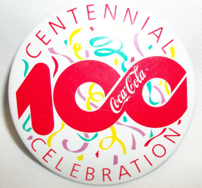 Title (ebay affiliate link): VINTAGE COCA COLA 100 CENTENNIAL CELEBRATION BUTTON/PIN