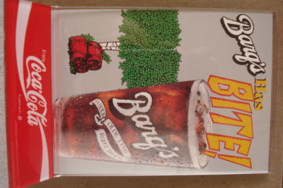 VINTAGE ** COKE Frame & BARQ'S ROOT BEER ad plex STAND UP Menu HOLDER Coca Cola