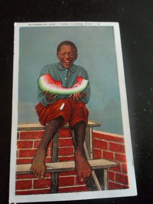 Title (ebay affiliate link): VTG BLACK AMERICANA WATERMELON JAKE LINEN POSTCARD 1942