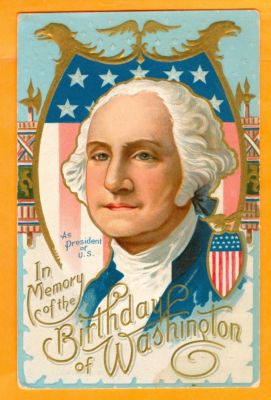 Title (ebay affiliate link): 1909 vintage embossed postcard GEORGE WASHINGTON Birthday series #1 in Memory