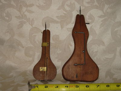 2 ANTIQUE HOOK 1881 RUG NEEDLE WEAVING SHUTTLE WOOD TOOL LACE SEWING LOOM ROSS