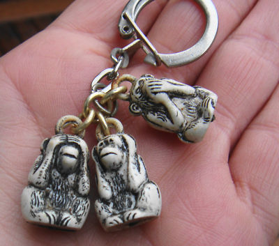Title (ebay affiliate link): Vintage Hear NO See No Speak NO EVIL Monkeys Gumball Charms Porte Clef KeyChain