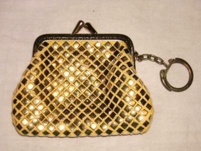 Title (ebay affiliate link): Sweet Small Vintage 1960's Gold Mesh Design Kiss-Lock Coin Purse w/Keychain