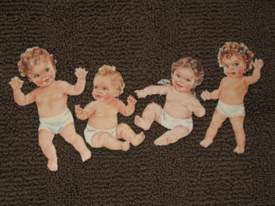 Baby Paper Dolls set with 4 babies and 21 pieces of clothing circa 1950's