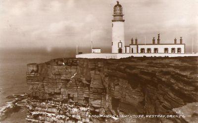 POSTCARD REAL PHOTOGRAPH NOUP HEAD LIGHTHOUSE WESTRAY ORKNEY SCOTLAND SHIPPING