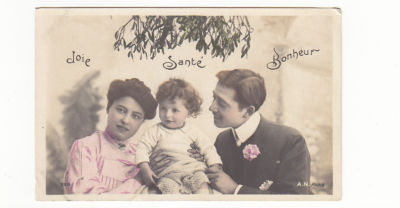 CHARMING CARD OF A MOTHER,FATHER AND BABY*A.N.PARIS