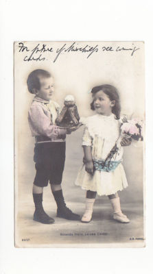 Title (ebay affiliate link): CHARMING CARD OF A LITTLE BOY AND GIRL WITH CAKE AND FLOWERS* A.N. PARIS
