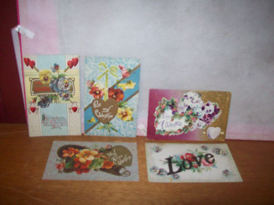 Title (ebay affiliate link): (5) MIXED LOT "COLORED PANSY FLOWERS AROUND VALENTINE HEARTS" GREETINGS! LOOK!!!