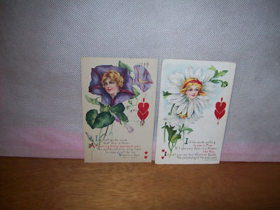 Title (ebay affiliate link): (2) STEGHER/HELEN E. JEFFERS "LADIES FACES ATOP OF VALENTINE FLOWERS" LOOK!!!!!!