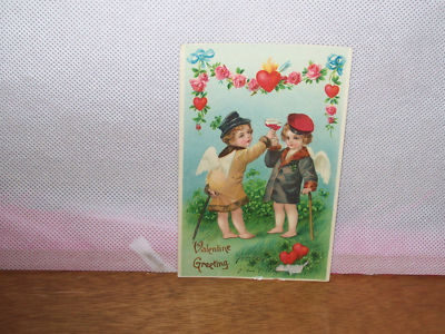 Title (ebay affiliate link): B. W. GLOSSY VALENTINE "TWO CUPID'S WEARING COATS & TOASTING DRINKS!" LOOK!!!!!!