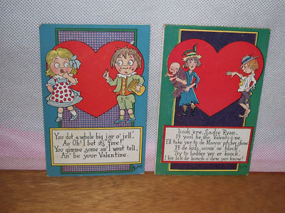 Title (ebay affiliate link): (2) BISHOP "UNIQUE VALENTINE GREETINGS-BOY EATING JELLY & BUM DAD BY WIFE & KID"