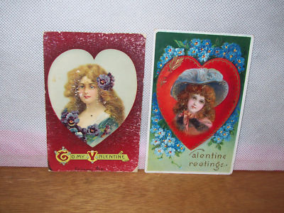 Title (ebay affiliate link): (2) GLOSSY VALENTINE POSTCARDS "BEAUTIFUL WOMEN INSIDE HEART SHAPES!" LOOK!!!!!!