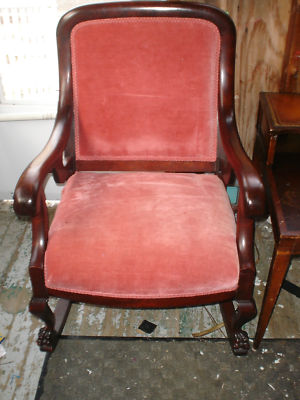 Title (ebay affiliate link): Antique Victorian Mahogany Claw Foot Upholstered Rocking Chair NR