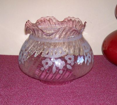 Superb vintage pink swirl glass oil lamp shade 4 inch diameter gallery