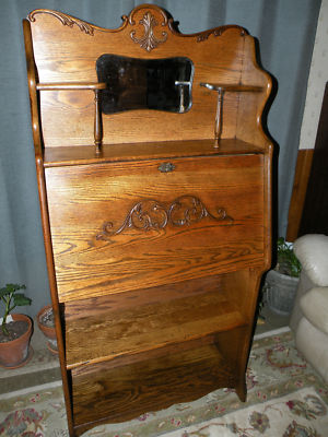 Title (ebay affiliate link): Antique American Golden Oak Fancy Larkin Desk w/ Key & Org. Beveled Mirror
