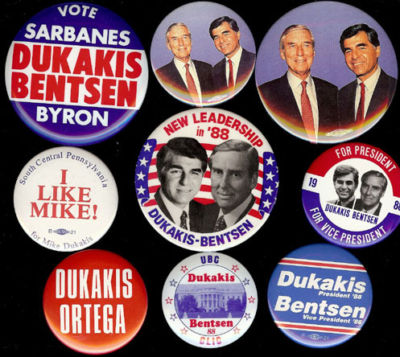 1988 MICHAEL DUKAKIS & LLOYD BENTSEN CAMPAIGN BUTTON COLLECTION - B