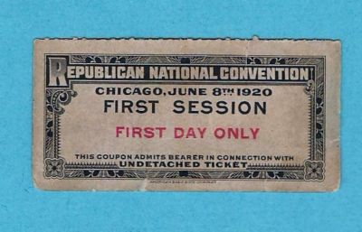 Title (ebay affiliate link): REPUBLICAN NATIONAL CONVENTION CHICAGO 1920 FIRST DAY ONLY TICKET