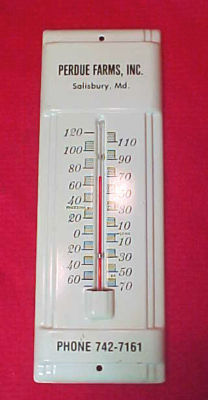 VINTAGE PERDUE FARMS ADVERTISING THERMOMETER METAL SALISBURY, MD CHICKEN POULTRY
