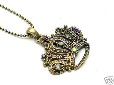 CROWN NECKLACE ANTIQUE COLOR GOLD WITH RHINESTONES