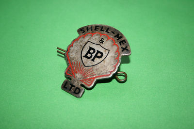 Title (ebay affiliate link): **ORIGINAL VINTAGE BRASS*ENAMEL*SHELL - MEX*BP LTD BADGE*