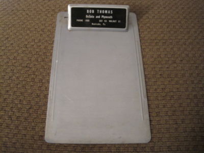 Title (ebay affiliate link): BOB THOMAS DESOTO & PLYMOUTH-NANTICOKE,PA-1940s ERA METAL CLIPBOARD