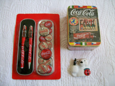 Title (ebay affiliate link): Coca Cola Metal Cards/Tin, Pen & Pencil/Tin, Magnet lot