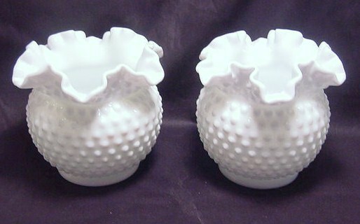 Fenton Milk Glass Hobnail Large Round Rose Bowl Vases