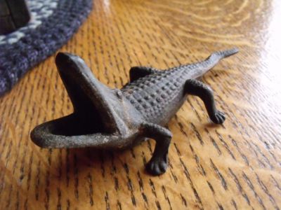 Title (ebay affiliate link): Primitive Antique Heavy Cast Metal Alligator Ashtray