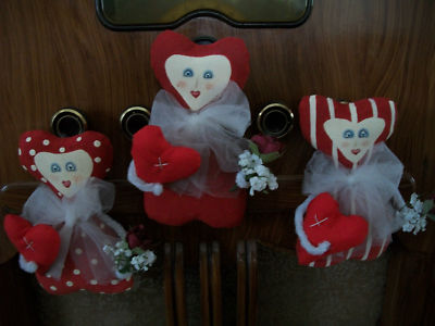 Primitive Folk Art Valentine Day Heart Dolls, Peg Hangers Set of 3