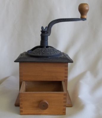 Title (ebay affiliate link): Vintage Coffee Grinder/Mill, Almost Perfect Condition, Wood and Iron Handles..
