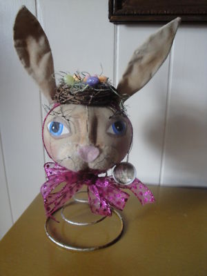 Title (ebay affiliate link): Primitive Doll Folk Art Easter Bunny with Easter Egg Bonnet on Vintage Spring