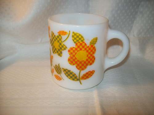 Retro Milk Glass Coffee Mug-Orange Floral Design