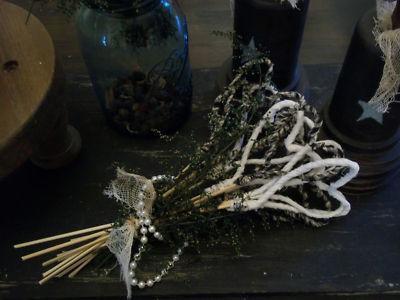 Title (ebay affiliate link): ~Primitive Rag Wrapped Heart Pokes~1 Dozen~Sweet Annie~Black and Beige