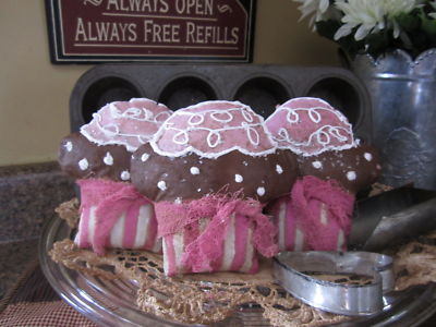 3*Primitive Valentine Spring Easter CuPcaKes filler tuck fake food cookies 3