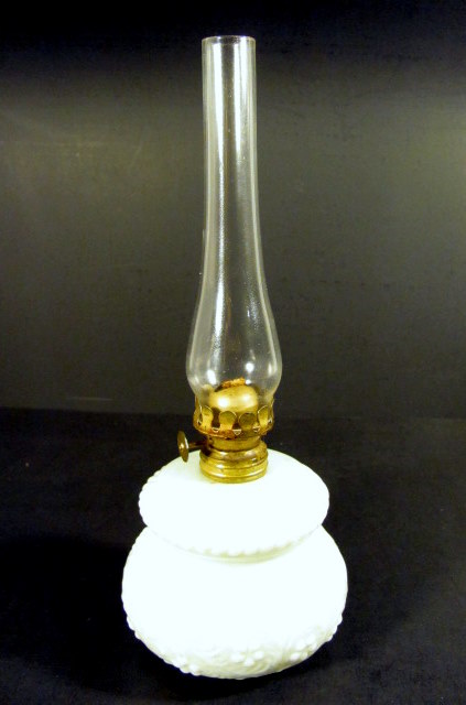 Vintage - Victorian - MILK GLASS OIL LAMP w/ Chimney