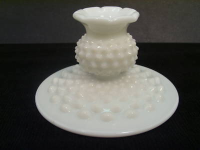 Antique White Hob Nail Opaque Milk Glass Candle Holder