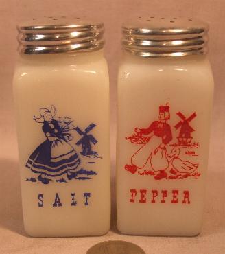 Vintage Square Milk Glass W/Dutch Couple S&P Shakers