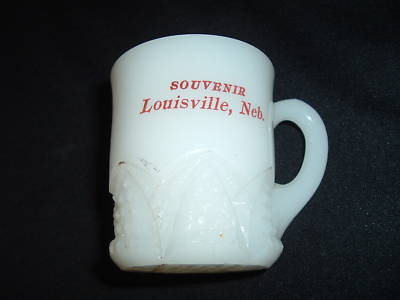 SOUVENIR SMALL CUP++LOUISVILLE, NEB.++ MILK GLASS