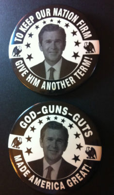 Title (ebay affiliate link): **Pair of Good - Guns Guts - Pro George W Bush - Made America Great - 3" pinba
