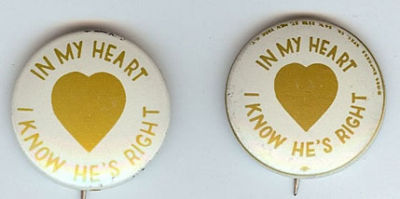 Title (ebay affiliate link): 1964 GOLDWATER IN MY HEART HE'S RIGHT CAMPAIGN BUTTONS - 2 DIFF PRINT VARIATIONS