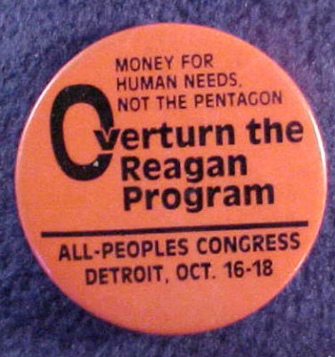 Title (ebay affiliate link): Official ANTI WAR REAGAN Pin ALL~PEOPLE PARTY Button DETROIT CONGRESS Pinback