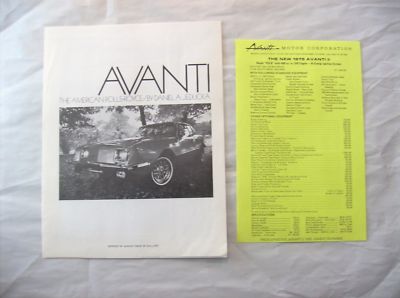 Title (ebay affiliate link): VINTAGE STUDEBAKER AVANTI CAR AD BROCHURE & PRICE SHEET- 1972 GALLERY REPRINT