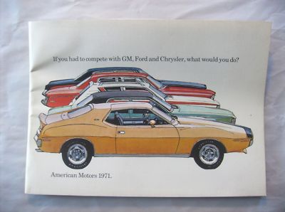 Title (ebay affiliate link): 1971 AMERICAN MOTORS CAR BROCHURE GREMLIN. HORNET, JAVELIN, MATADOR, AMBASSADOR