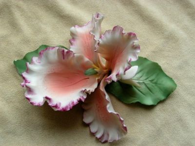 Title (ebay affiliate link): FABAR CAPODIMONTE PORCELAIN FLOWER WHITE AND PINK IRIS MADE IN ITALY