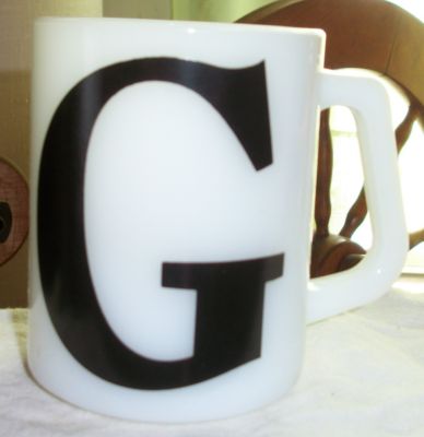 Retro Federal MILK GLASS Coffe cup mug LETTER G Vintage!