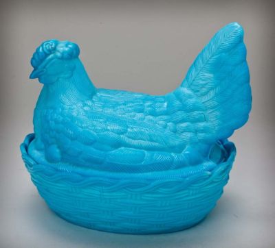 Title (ebay affiliate link): Blue Milk Glass Large CHicken on Nest - Portieux Vallerysthal