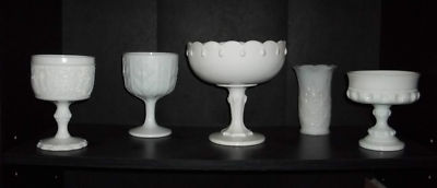 Title (ebay affiliate link): lot of vintage milk glass dishes planters compotes or vases pedestal FTD 1975