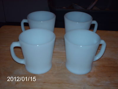 Title (ebay affiliate link): SET OF 4 FIRE KING MILK WHITE COFFEE MUGS /CUPS HEAT PROOF/ MADE IN THE USA USED